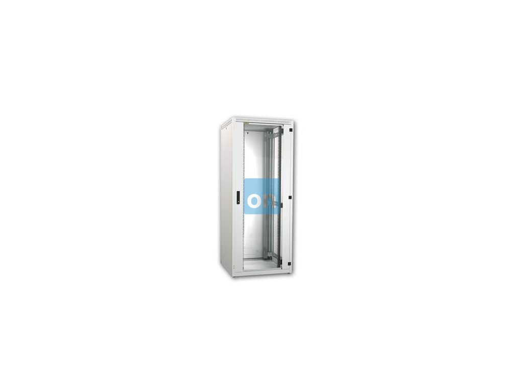 21U Rack 19'', š. 600, hl. 800, prosklené dveře, odnímatelný zadní panel, 2x bočnice 2x, světle šedá