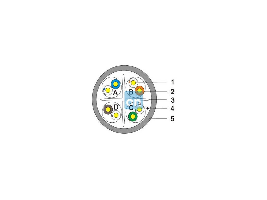 - Barva vodičů: bílo-modrá/modrá, bílo-hnědá/hnědá, bílo-zelená/zelená, bílo-oranžová/oranžová